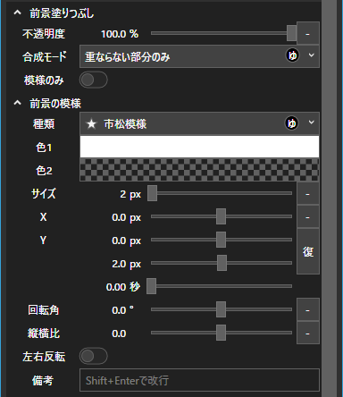 市松模様を選択し、Y座標を1コマごとに2pxずつ往復するようにすることでドット妨害を再現